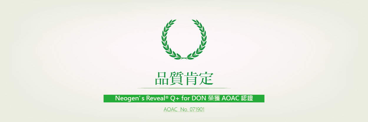 2019/08/06 最新消息 - Neogen’s Reveal® Q+ for DON 榮獲 AOAC 認證