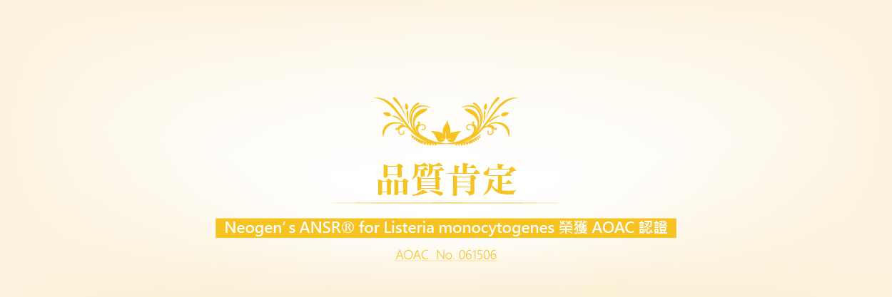Neogen公司的ANSR產品系列還包括經AOAC研究機構認證的針對李斯特菌屬的ANSR和針對沙門氏菌的ANSR。