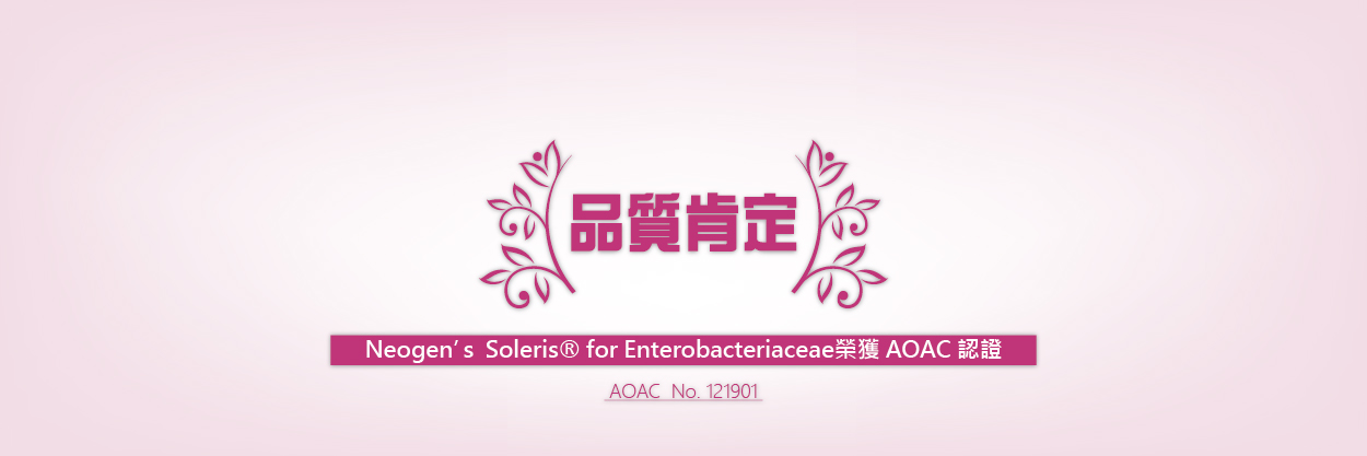 ► Neogen官網: AOAC approves Neogen’s Soleris® for Enterobacteriaceae