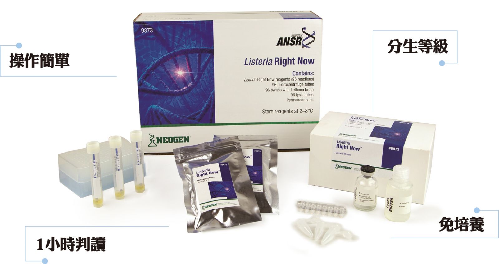 Neogen的新產品Listeria Right Now檢測系統利用rRNA偵測技術,在60分鐘內完成李斯特菌的檢驗作業,檢測對象
