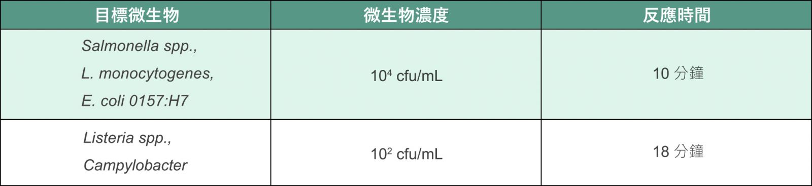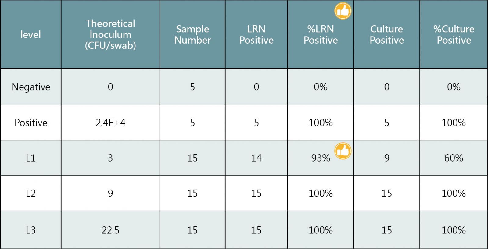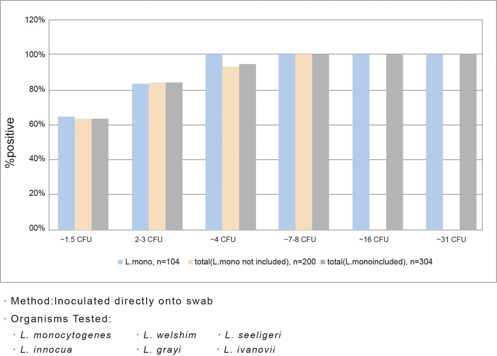 • 敏 感 度:4 cfu/swab with 95% confidence