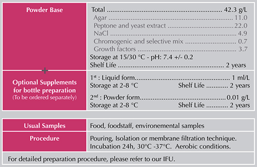 Gain flexibility using powder rather than ready to use plates: Use the entire pack, or if there is a need for a smaller number of plates, just a portion. If kept under appropriate storage temperature, CHROMagarTM Enterobacteria has more than 18 months shelf of life. This flexibility is essential to avoid the waste resulting from expired-unused plates.