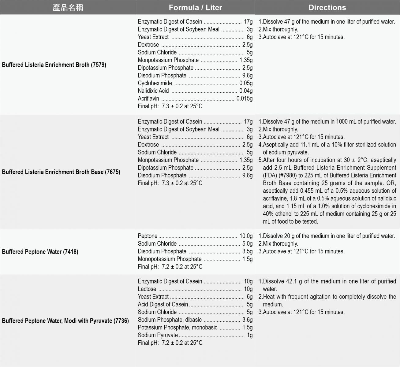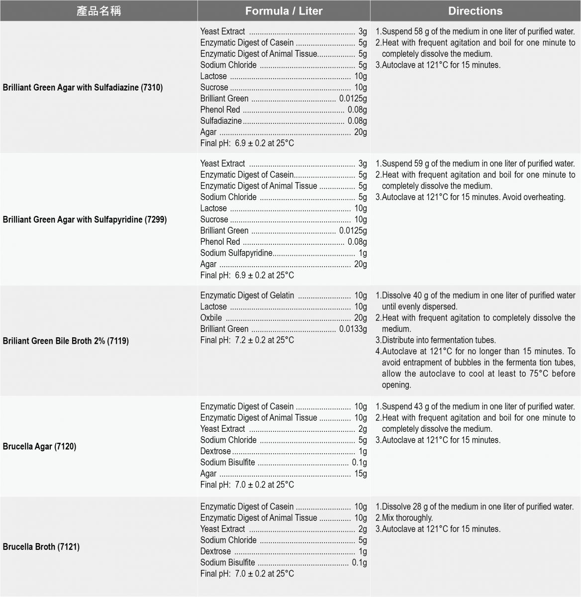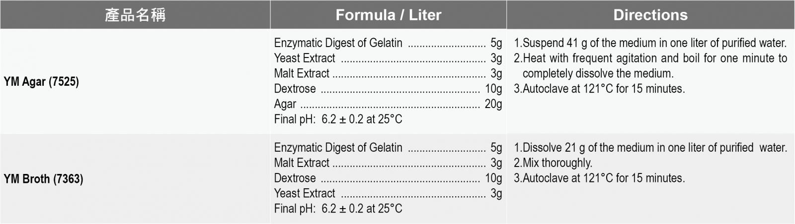 產品說明: Acumedia食安品管粉末培養基 1.各式食品乳品品管用TFDA, FDA, ISO微生物級培養基。 2.針對總生菌,總大腸桿菌群,總黴菌酵母菌計數培養基與病原菌 Acumedia 種類齊全是您最佳選擇!! |