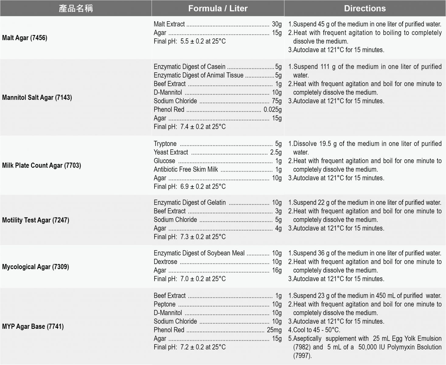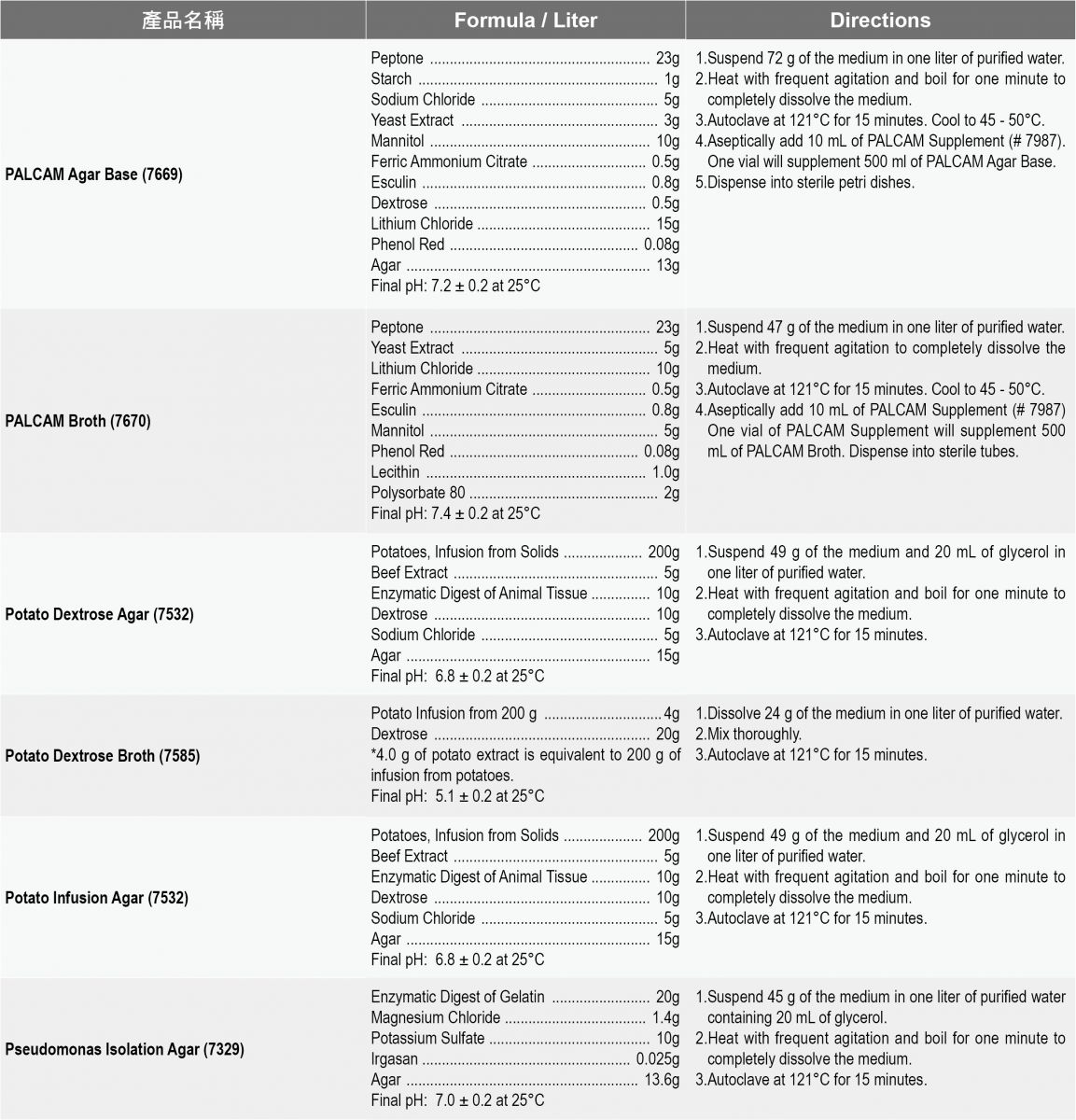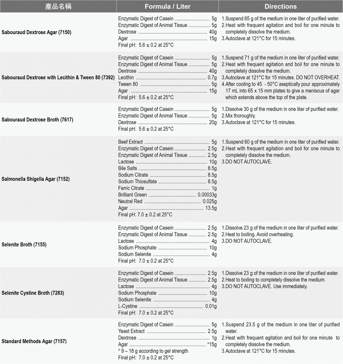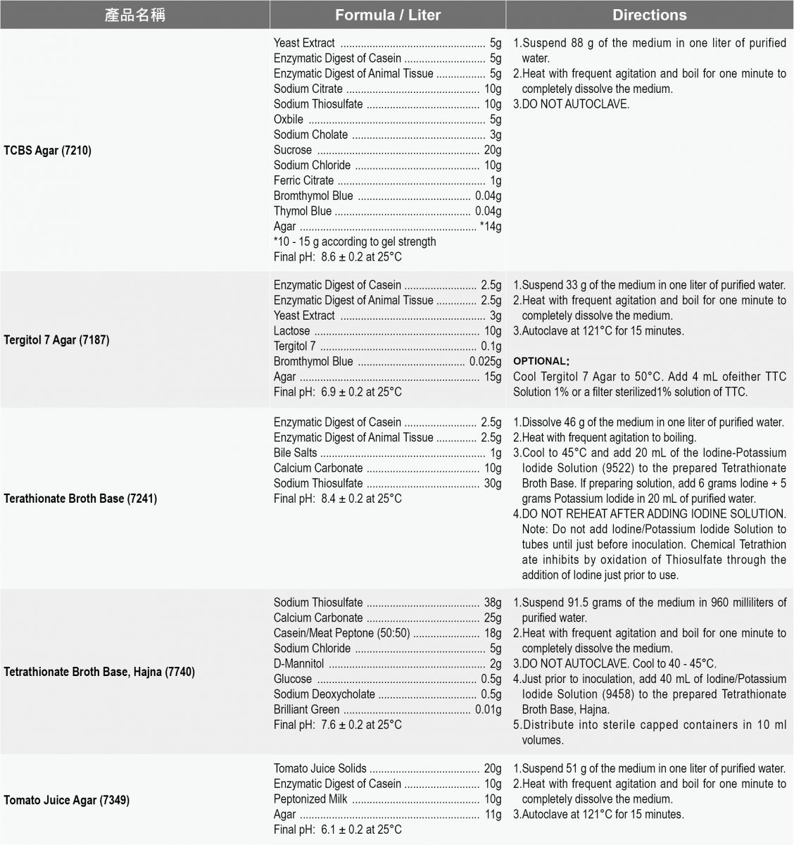 Acumedia食安品管粉末培養基