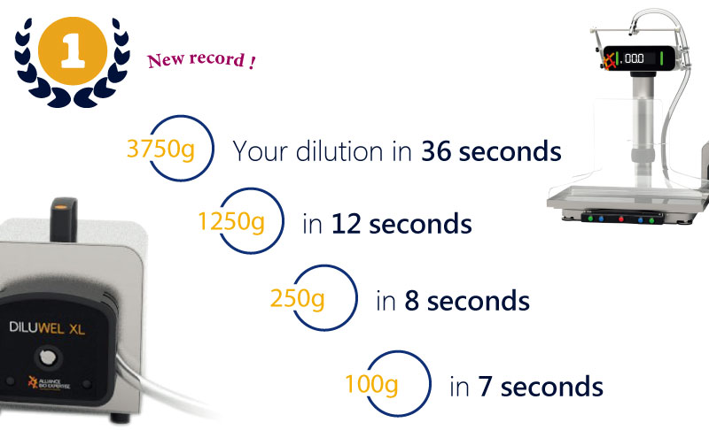 是一款重量稀釋器,適用於 10 至 375g 的樣品,精確度 <99%,可放置在工作台上或生物安全櫃中。配備 6L/min 的高流量的蠕動幫浦,僅需 37 秒即可實現 375g 的 1/10 稀釋 ,這是工業微生物學的一場革命。