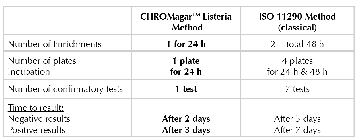 CHROMagar™開發了一種快速檢測食品中單核細胞增多症李斯特菌的方法,包括以下簡單步驟: