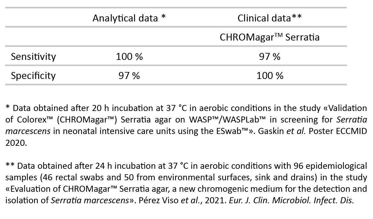 CHROMagar™ Serratia是一種選擇性和差異性的顯色培養基,旨在用於定性直接檢測粘質沙雷氏菌的定植,以幫助預防和控制重症監護病房 (ICU) 中的粘質沙雷氏菌,尤其是新生兒。該測試使用患者的直腸拭子、咽喉拭子、傷口拭子和糞便進行,以篩查沙雷氏菌定植。它還可以通過表面採樣用於臨床環境中的衛生監測。