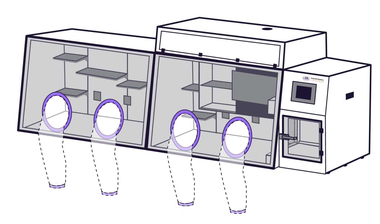 可將一個連續的第二工作區連接至艙體,組成 AS-500 XL 配置,提供足夠空間供第二位操作者在艙內工作,或容納更多分析設備。