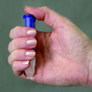 將採檢棒插回藍色反應槽至底部,靜置10秒鐘。