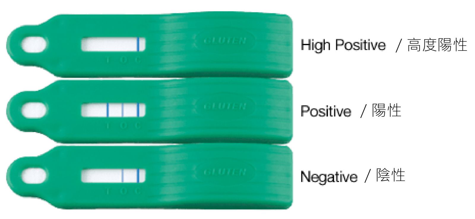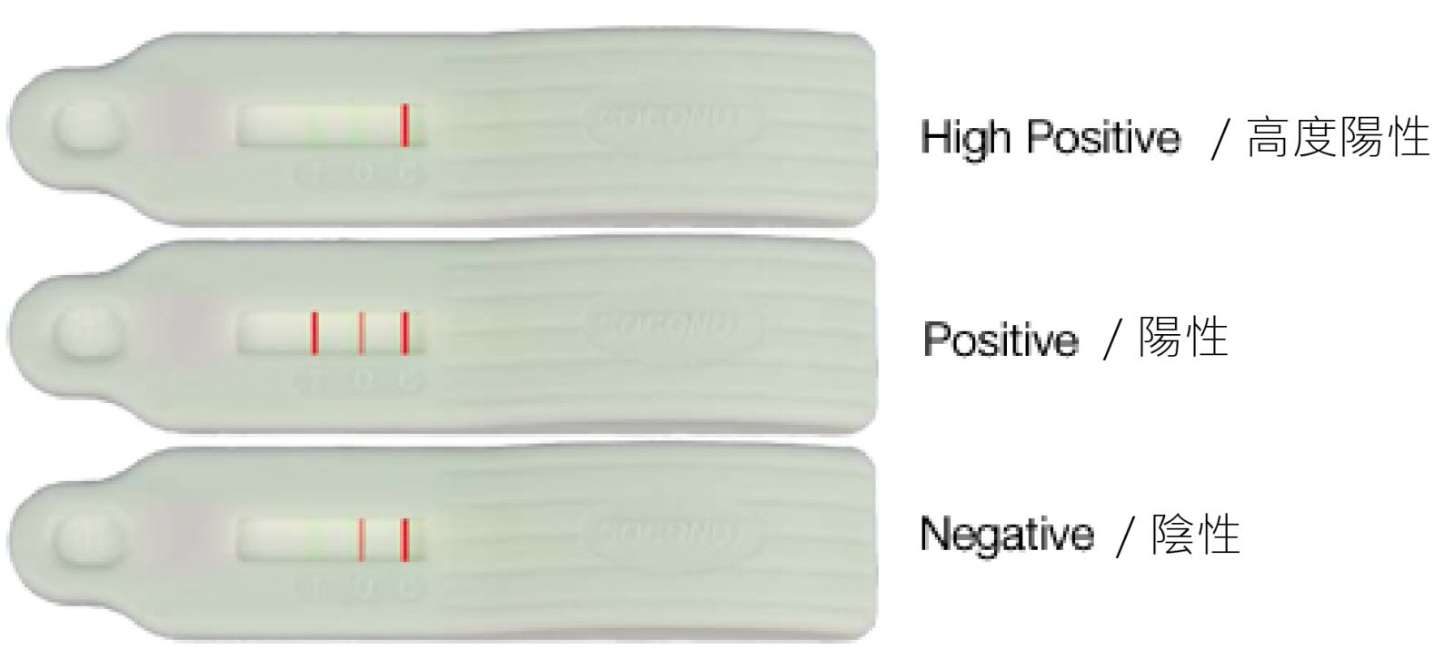 椰子蛋白檢測用的Reveal® 3-D為一特製的手持儀器,有三條判讀線:控制基準線用來判斷實驗操作是否正確,其他兩條線則是用來判斷樣品中是否存在椰子蛋白。