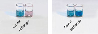 Results are read visually in a screening format—the more blue color, the more target substance detected.